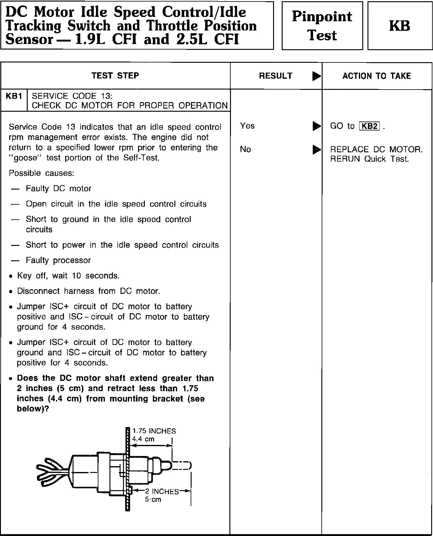 Pinpoint Test KB1 - DC Motor Idle Speed Control/Idle Tracking Switch/TPS: