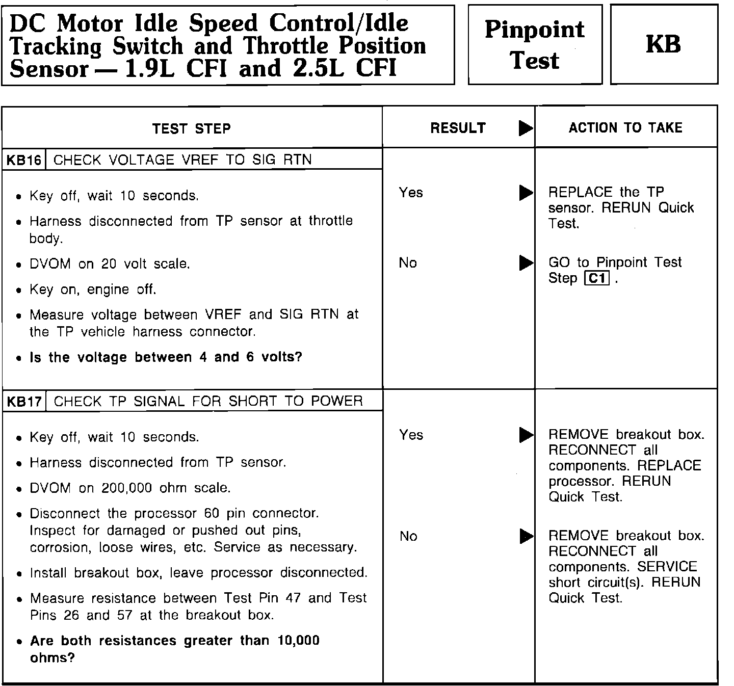 Pinpoint Test KB16 Thru KB17 - DC Motor Idle Speed Control/Idle Tracking Switch/TPS:
