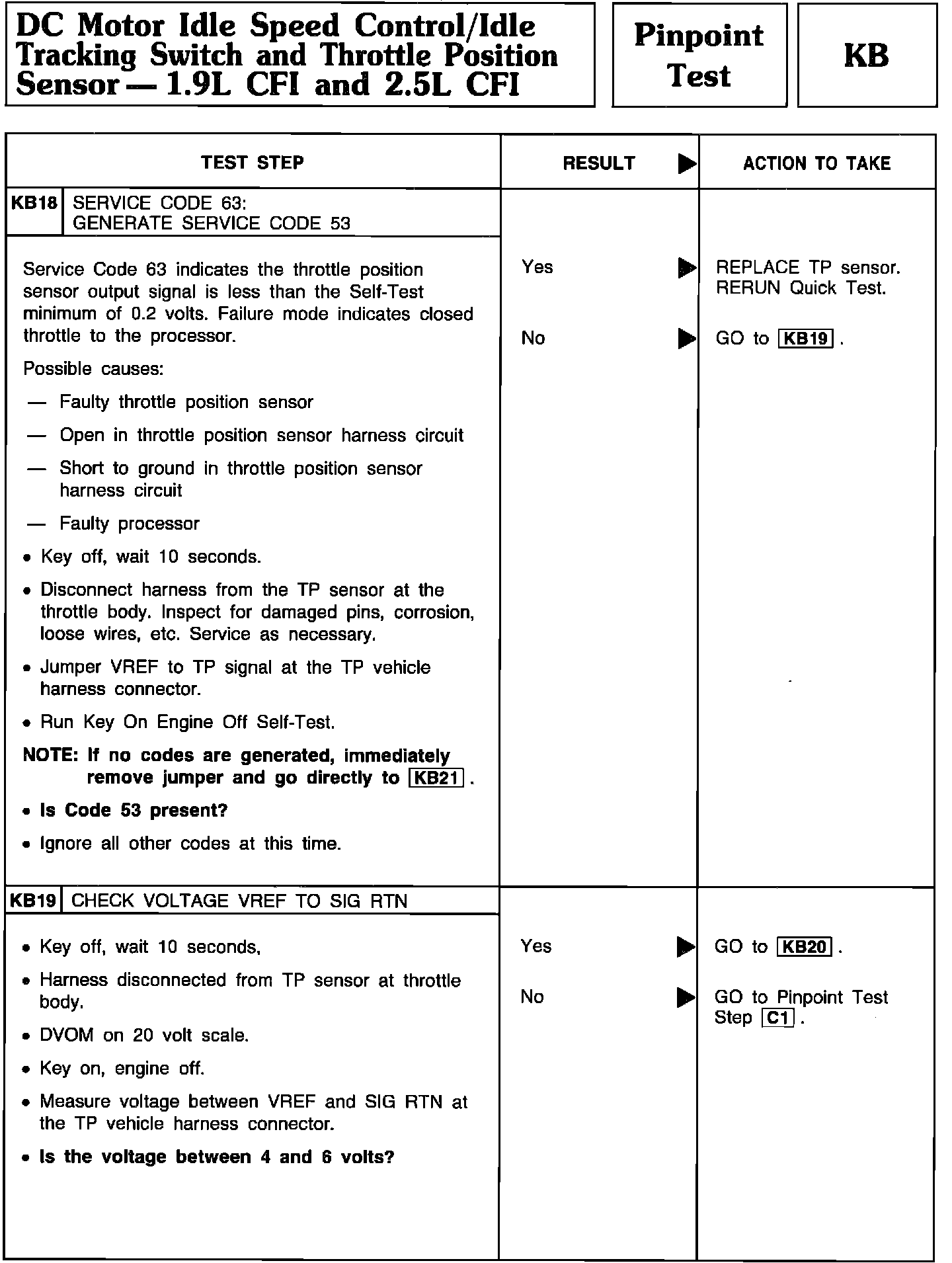 Pinpoint Test KB18 Thru KB19 - DC Motor Idle Speed Control/Idle Tracking Switch/TPS: