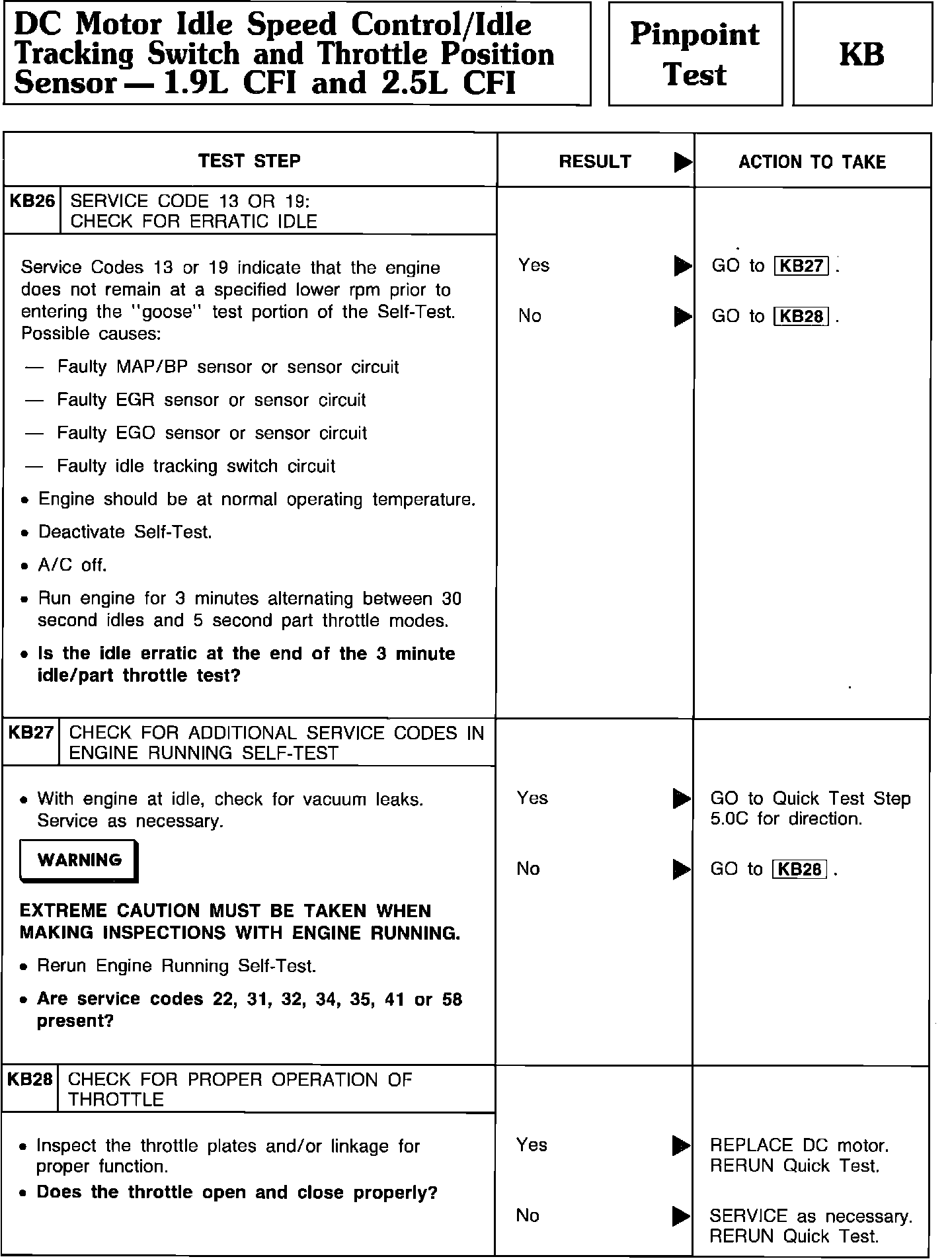 Pinpoint Test KB26 Thru KB28 - DC Motor Idle Speed Control/Idle Tracking Switch/TPS: