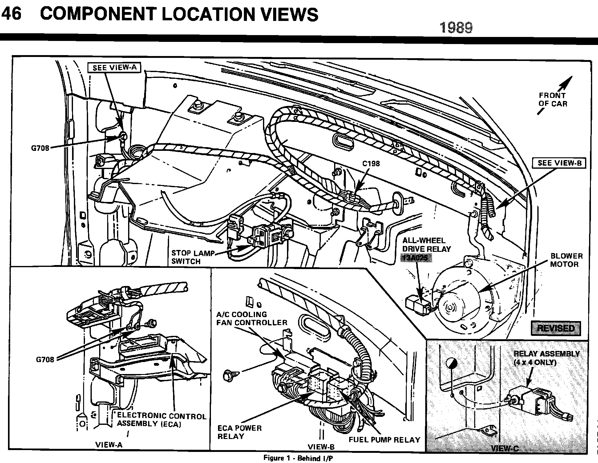^ ELECTRICAL/VACUUM TROUBLESHOOTING MANUAL- 1989-PAGE 46-INSTRUMENT PANEL ILLUSTRATION UPDATED TO SHOW UPSHIFT INDICATOR RELAY