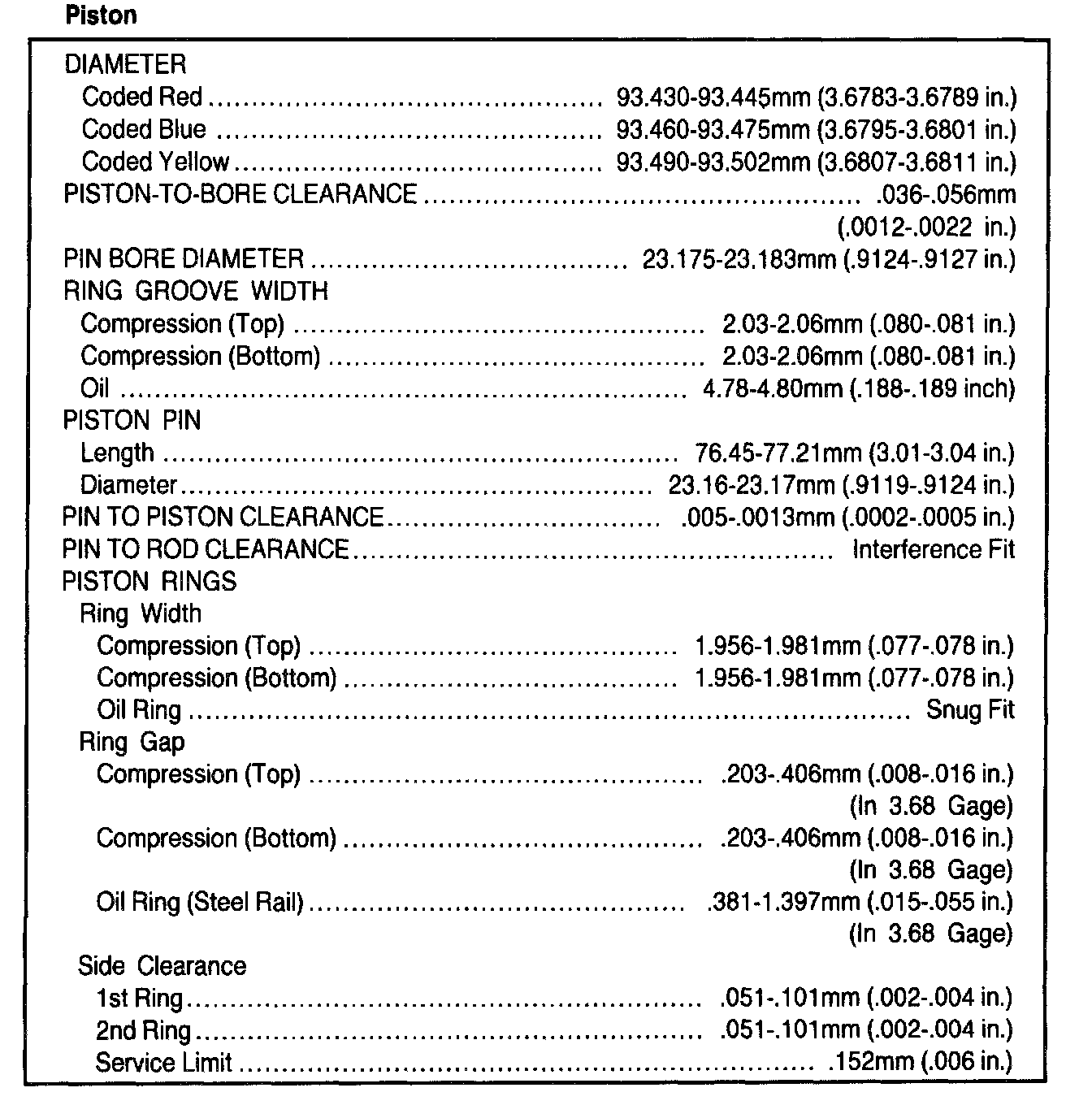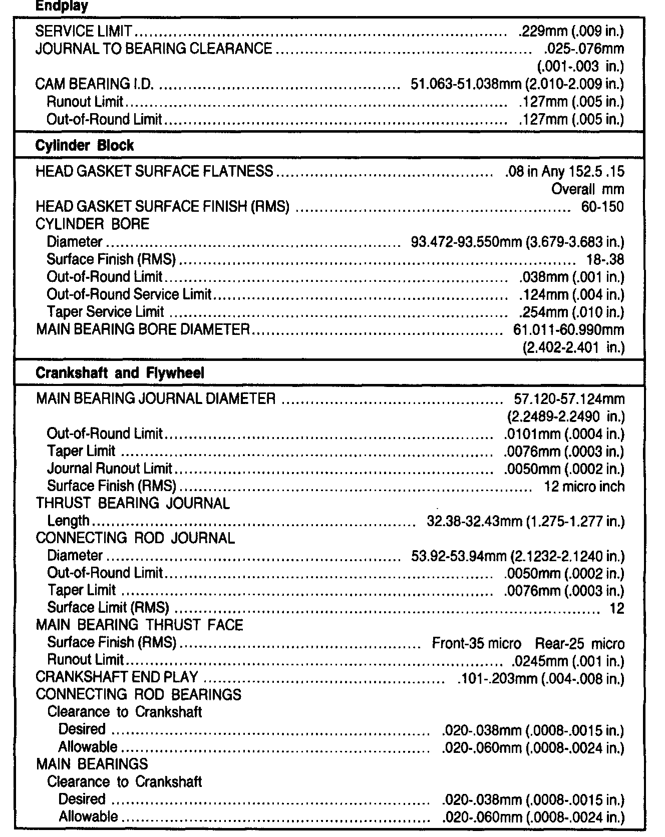 General Engine Specifications