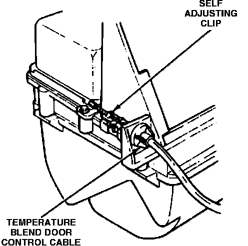 2. Move Temperature control lever to Cool position. Using control cable removal tool T83P-18532-AH, Fig. 14, disconnect temperature control cable housing and retainer from the A/C case bracket, then disconnect cable from temperature door crank arm, Fig. 16.
