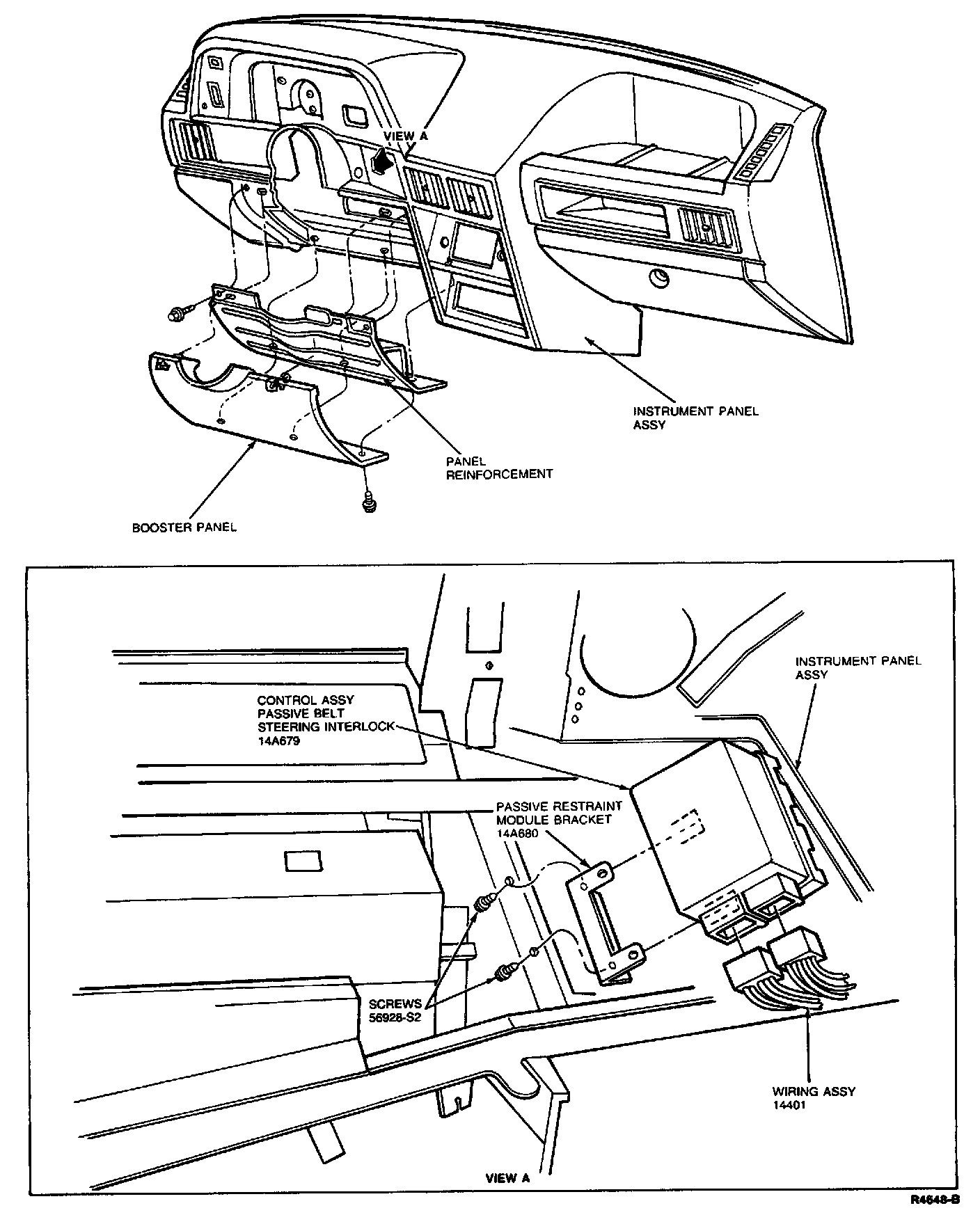 3. Remove module mounting bracket, located on vertical brace to right of steering column (two screws).