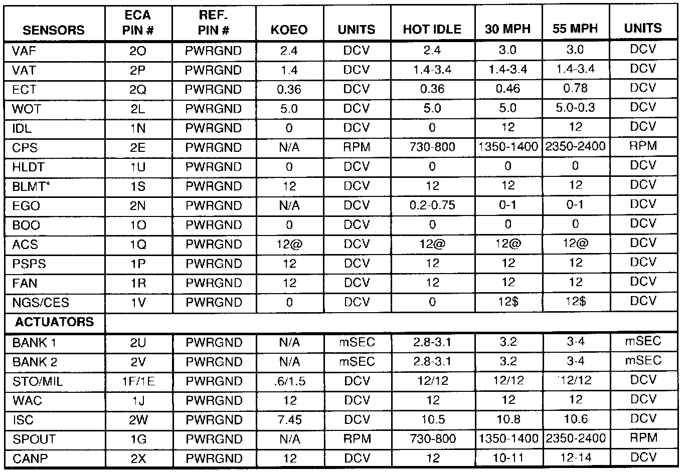Normal Scan Data Values (Includes PID's)