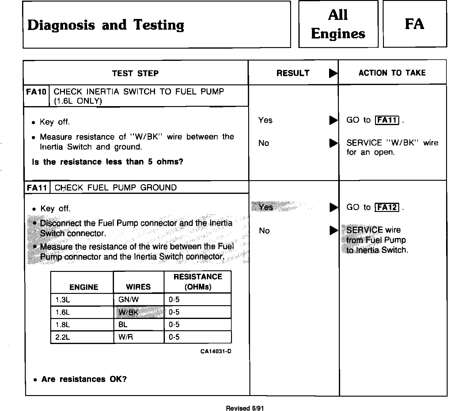 Test Step FA10, FA12