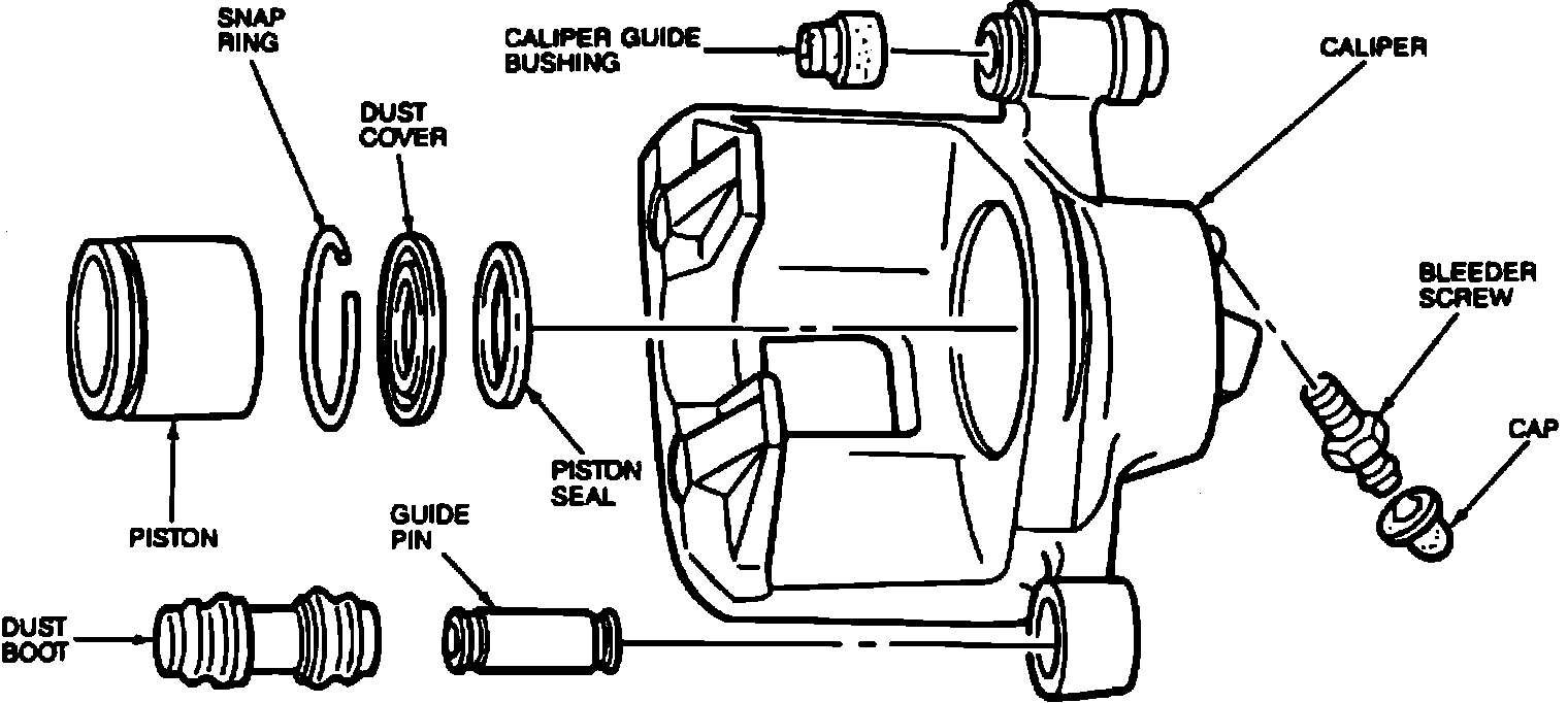 1. Lubricate mew piston seal with brake fluid and install seal in caliper groove. Ensure seal does not become twisted in caliper bore.