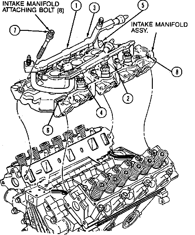 7. Remove fuel injector wiring harness from engine, then fuel supply manifold and injectors. Injectors and fuel supply manifold may be removed with intake manifold as an assembly.