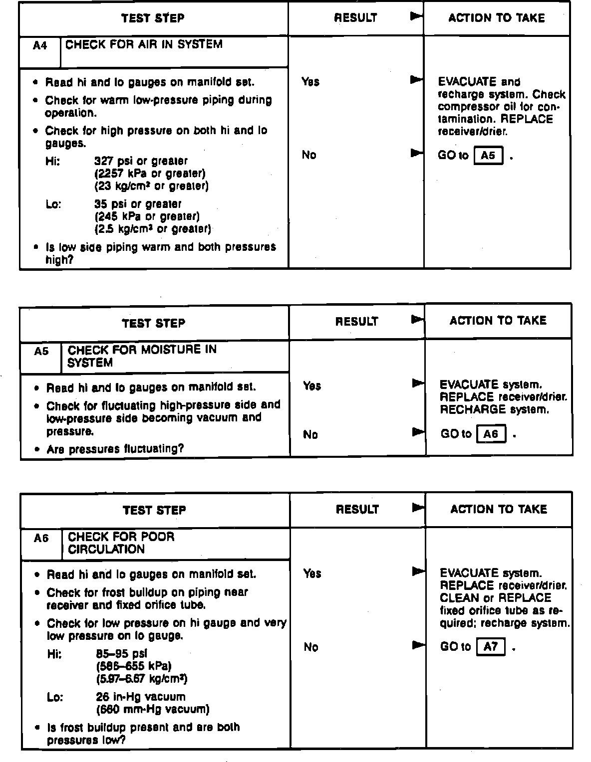 Fig. 14 Insufficient A/C cooling diagnosis (Test A4, A5 & A6):