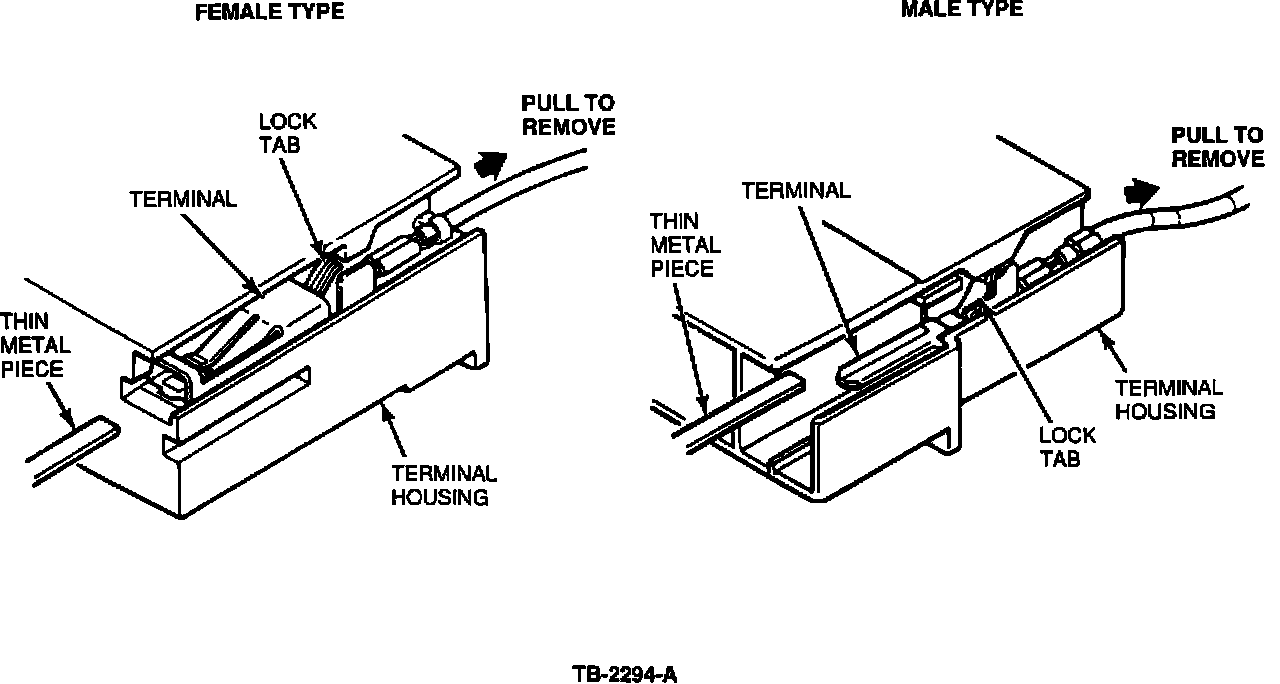 b. If required, use an electric contact cleaner. Refer to the 1991 Probe Shop Manual, Page 18-00-3, for connector and wire/terminal removal procedure, Figure 2.