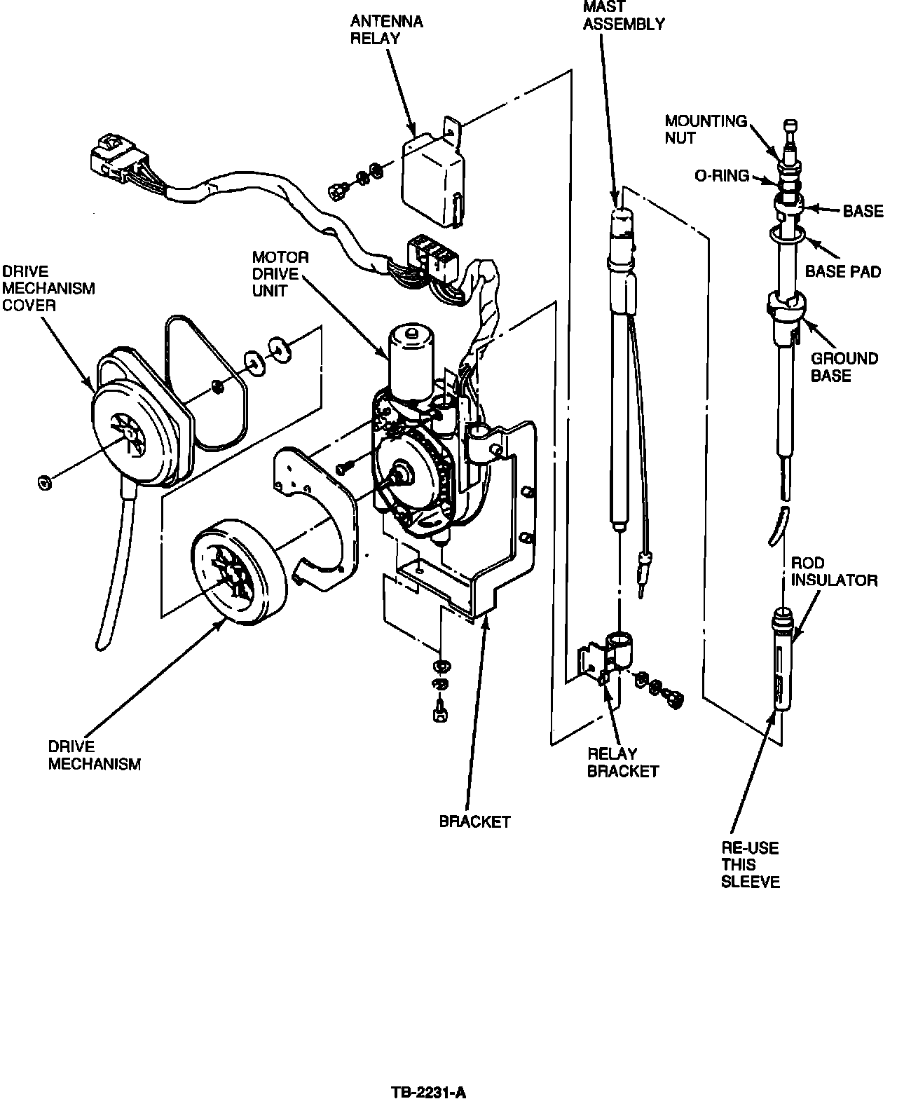 8. Install the parts removed during Steps # 1 and # 2. Cycle the antenna several times to confirm proper extension and retraction of the mast.