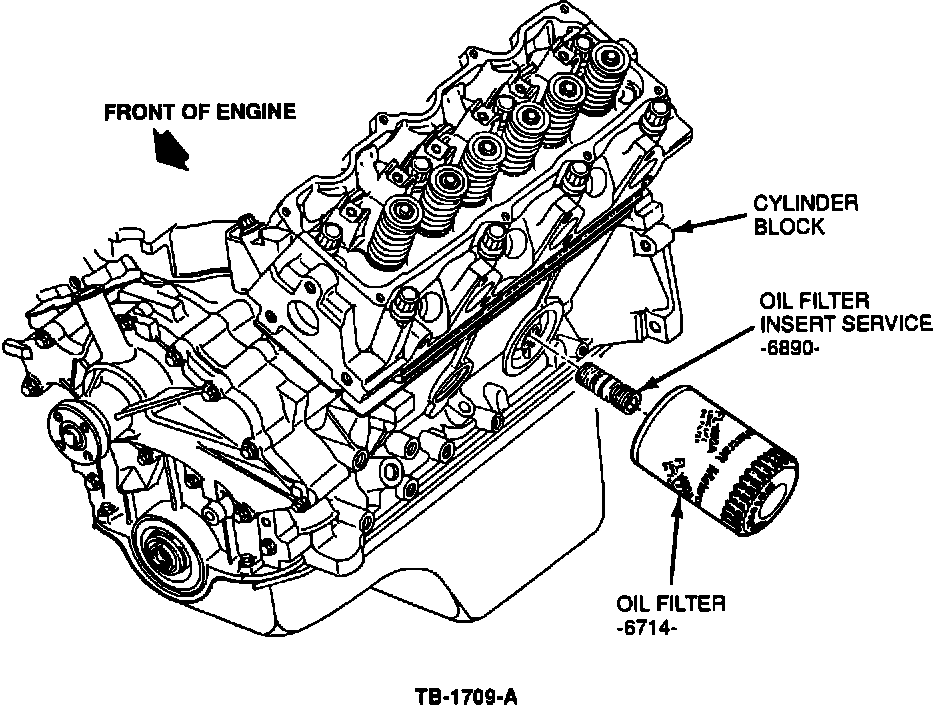 NOTE: THE NEW INSERT MUST BE TIGHTENED TO BOTTOM OUT ON THE THREADS SO THE INSERT WILL NOT LOOSEN WHEN REMOVING THE OIL FILTER.