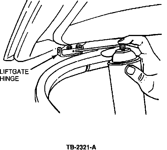 5. Wipe any excess lubricant from the hinge/liftgate area, then open and close the liftgate several times to work the lubricant into the hinge pin area.