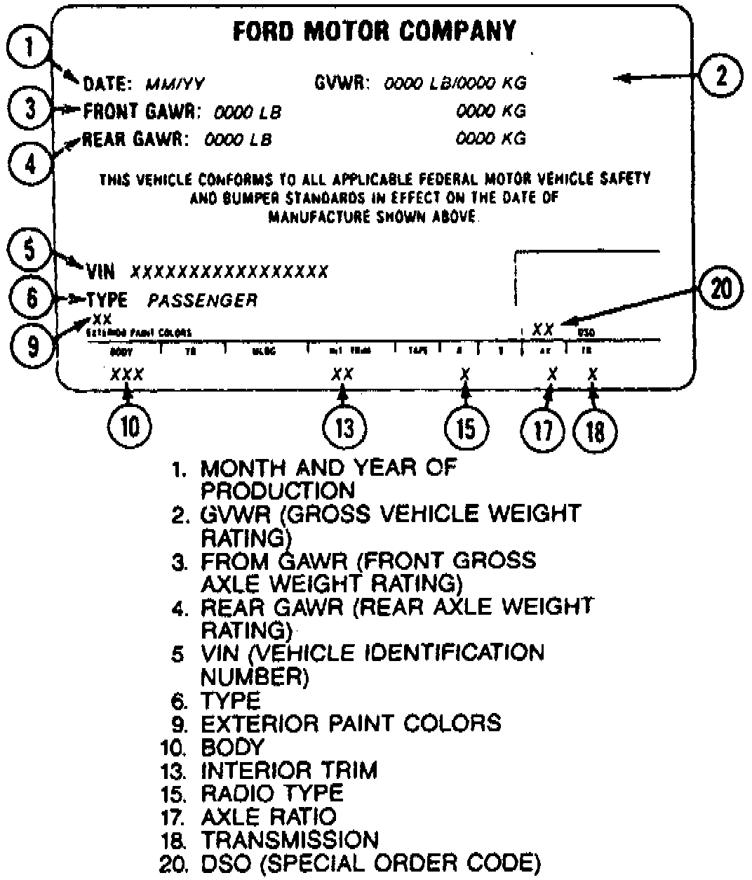All vehicles are equipped with a vehicle certification label affixed to the lefthand door jamb below the latch striker. Refer to the code below the space marked Trans. For additional information, such as model, service ID level, or build date, refer to the Transaxle Identification Tag. The transaxle identification tag is located on the transaxle case.