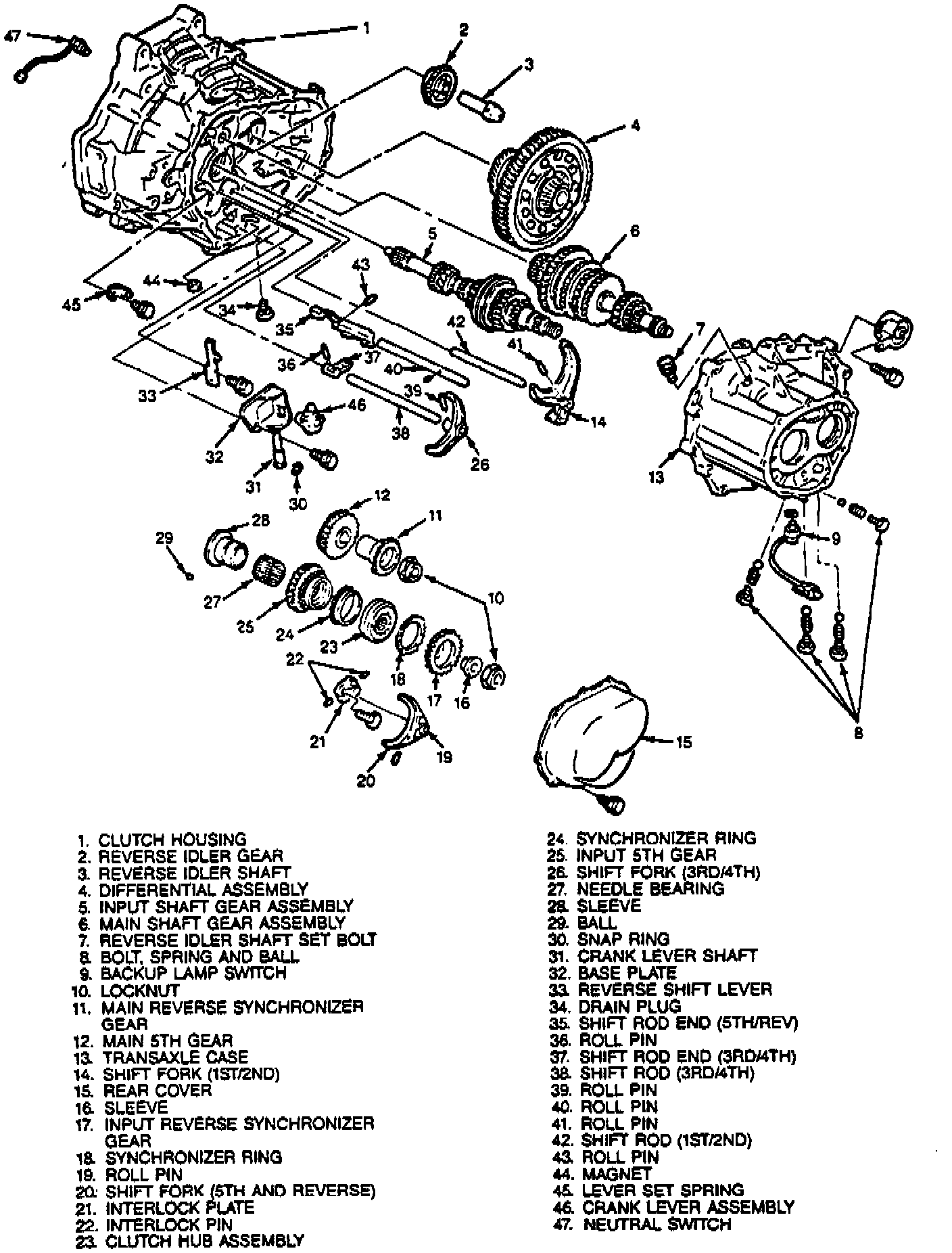 8. Remove main 5th gear, then the interlock plate and bolts.