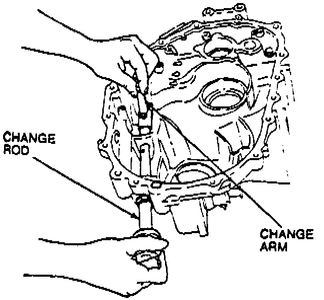 24. Remove change arm roll pin using a pin punch, then the baffle plate, change arm and change rod.