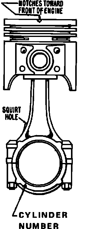 Assemble the rod to the piston with the notch on top of piston facing front of engine, Fig. 10.