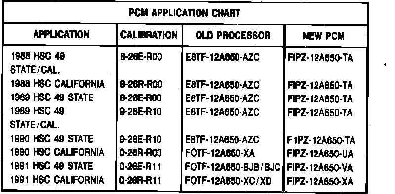 5. Install a new PCM with a revised calibration. Refer to the PCM Application Chart for correct parts usage.