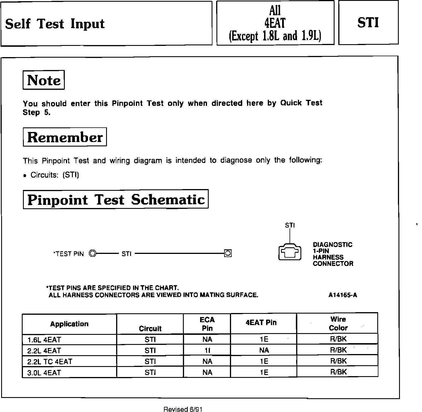 Self Test Input All 4EAT Except 1.8L and 1.9L