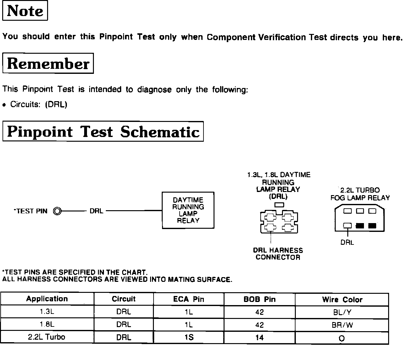 Pinpoint Test DRL Testing Notes And Test Schematic:
