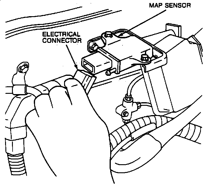 1. Disconnect the vacuum hose and electrical connector from the Barometric/Manifold Absolute Pressure BP/MAP sensor.