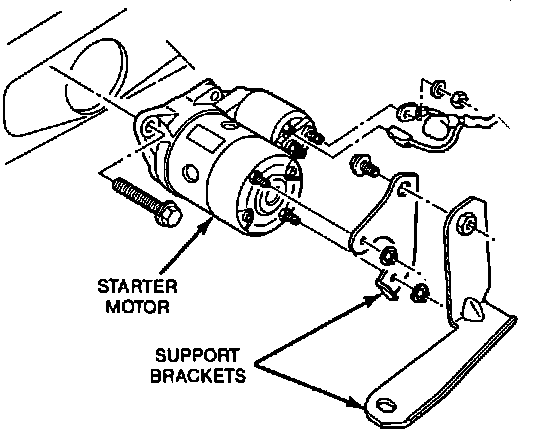 11. Reverse procedure to install, torque starter motor retaining bolts to 23-34 ft.lbs.