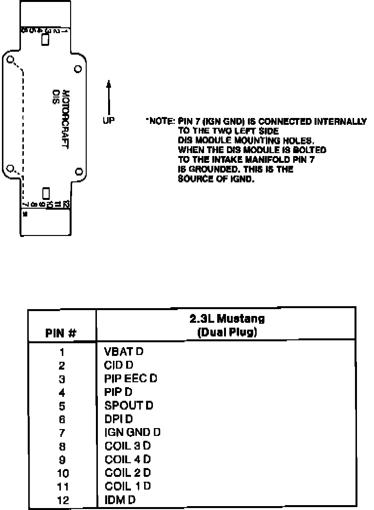 Distributorless Ignition (DIS) System Module Connector Pinout: