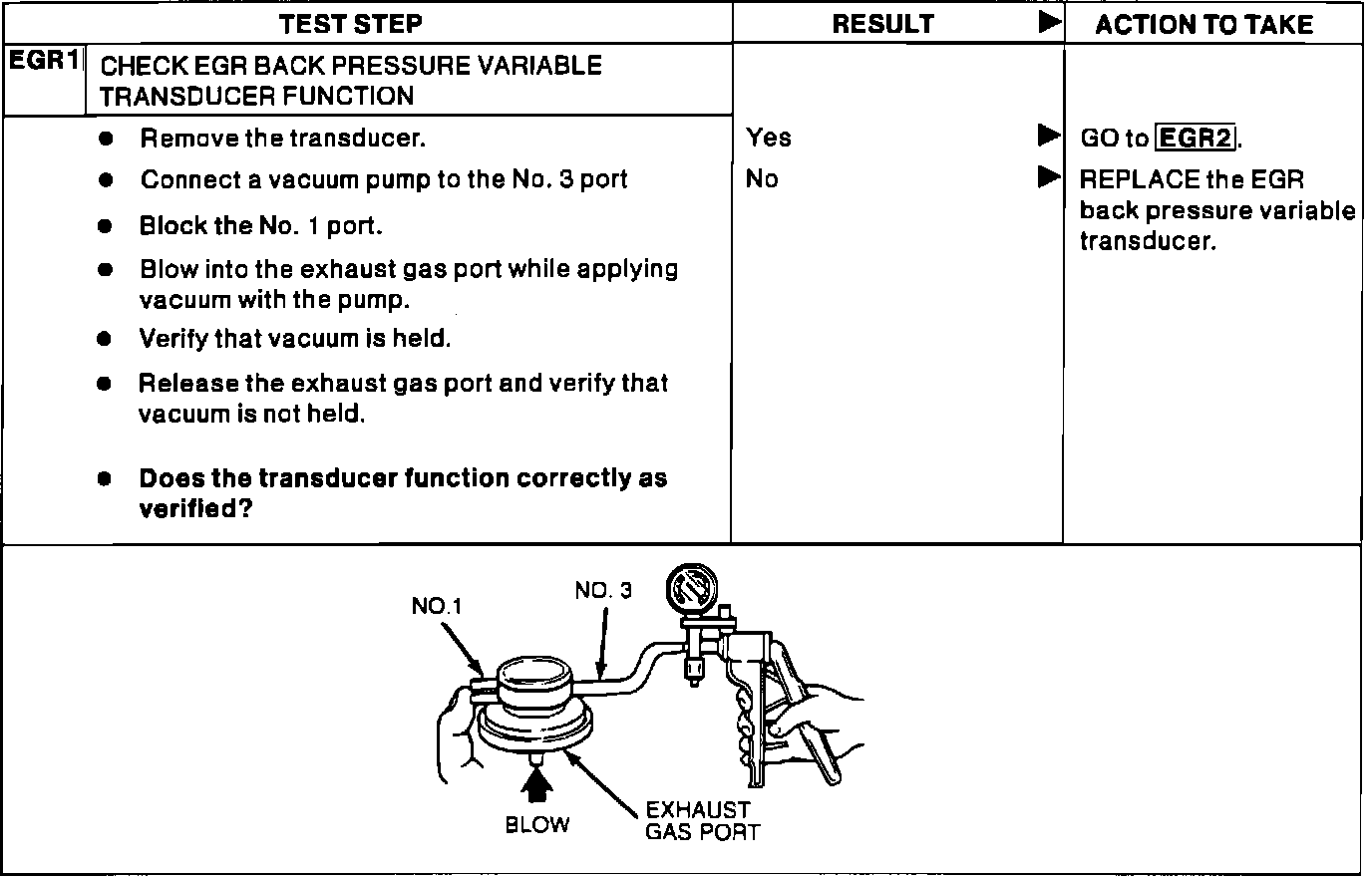 EGR 1 - Check EGR Back Pressure Variable Transducer Function