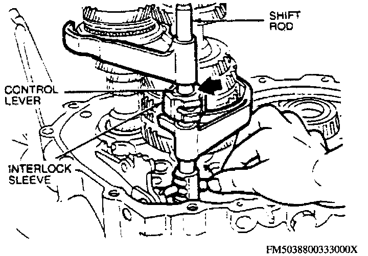 13. Align ends of interlock sleeve and control lever, then turn shift rod counterclockwise.