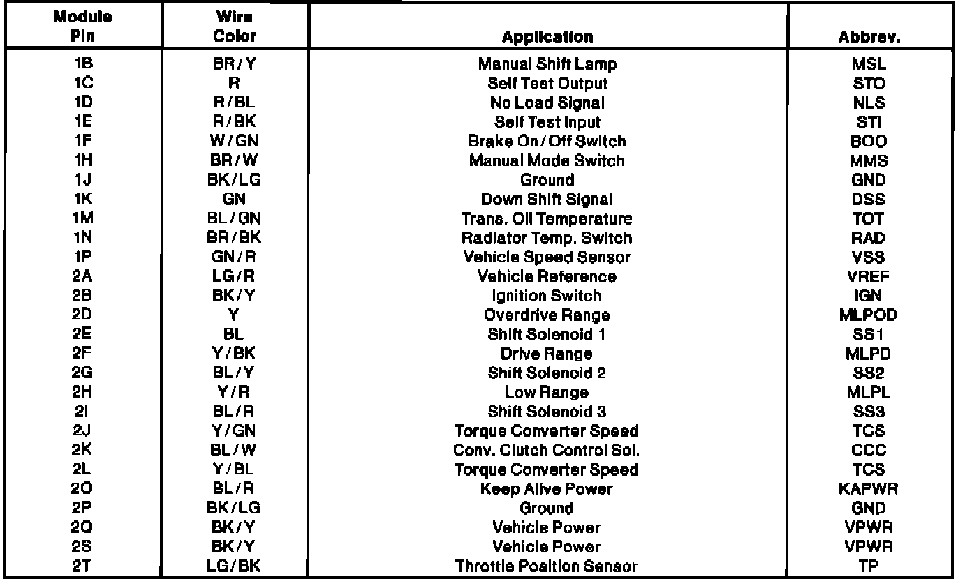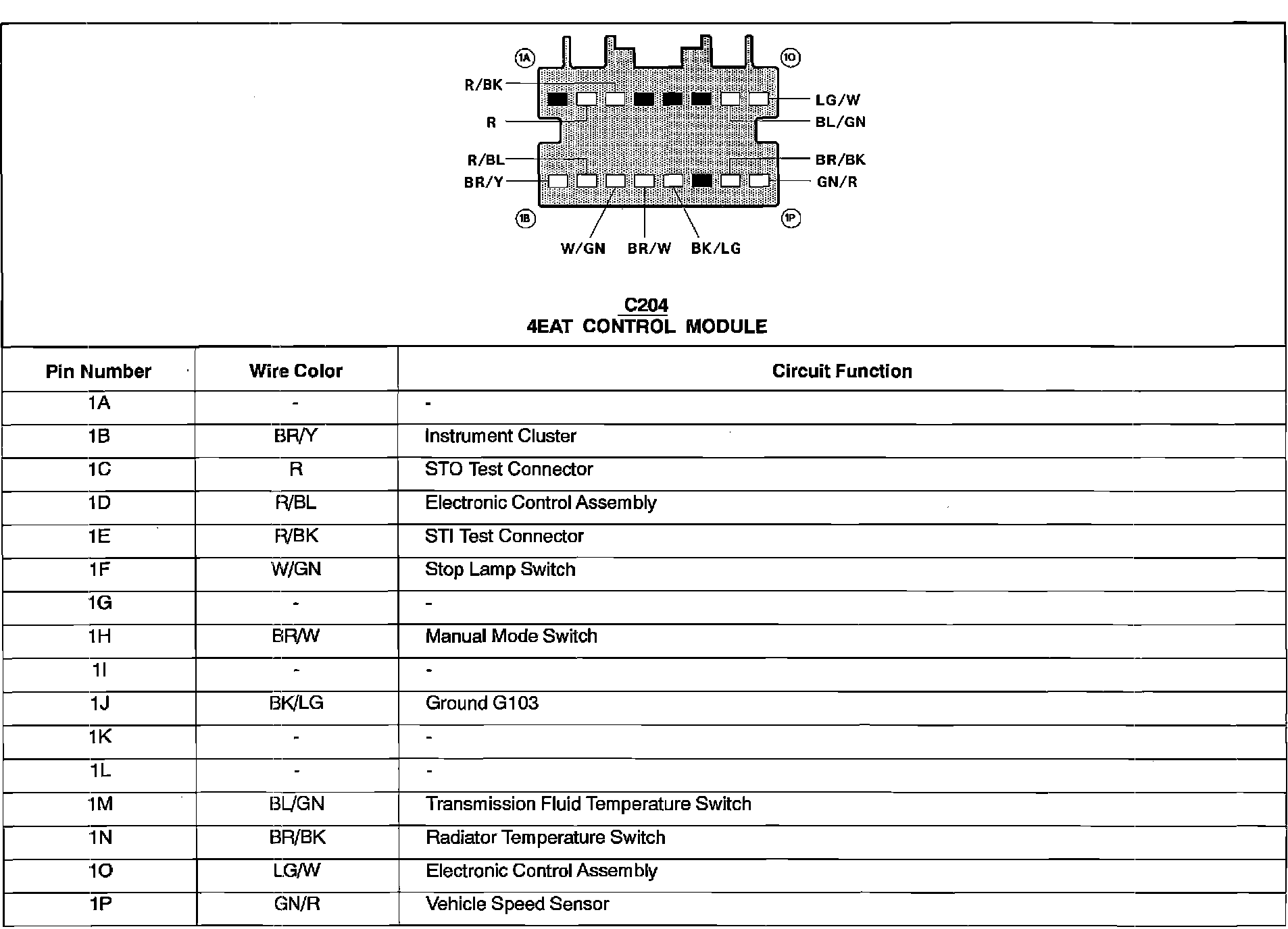 Control Module Pinout: