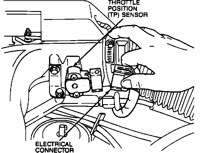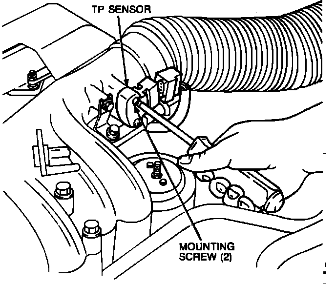 CAUTION: Slide the rotary tangs into position over the throttle shaft blade, then rotate the TP sensor CLOCKWISE to installed position. Failure to install the TP sensor in this manner may result in excessive idle speeds.