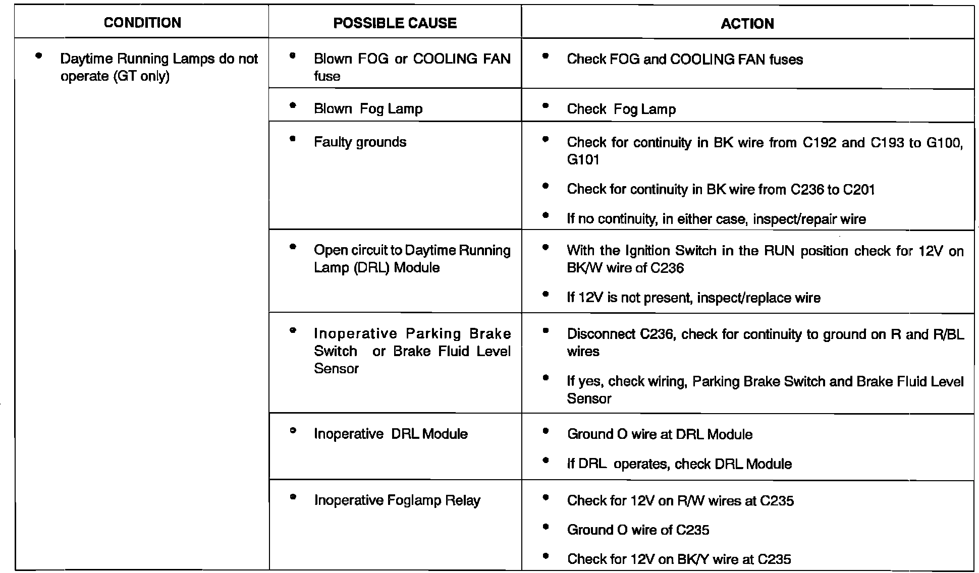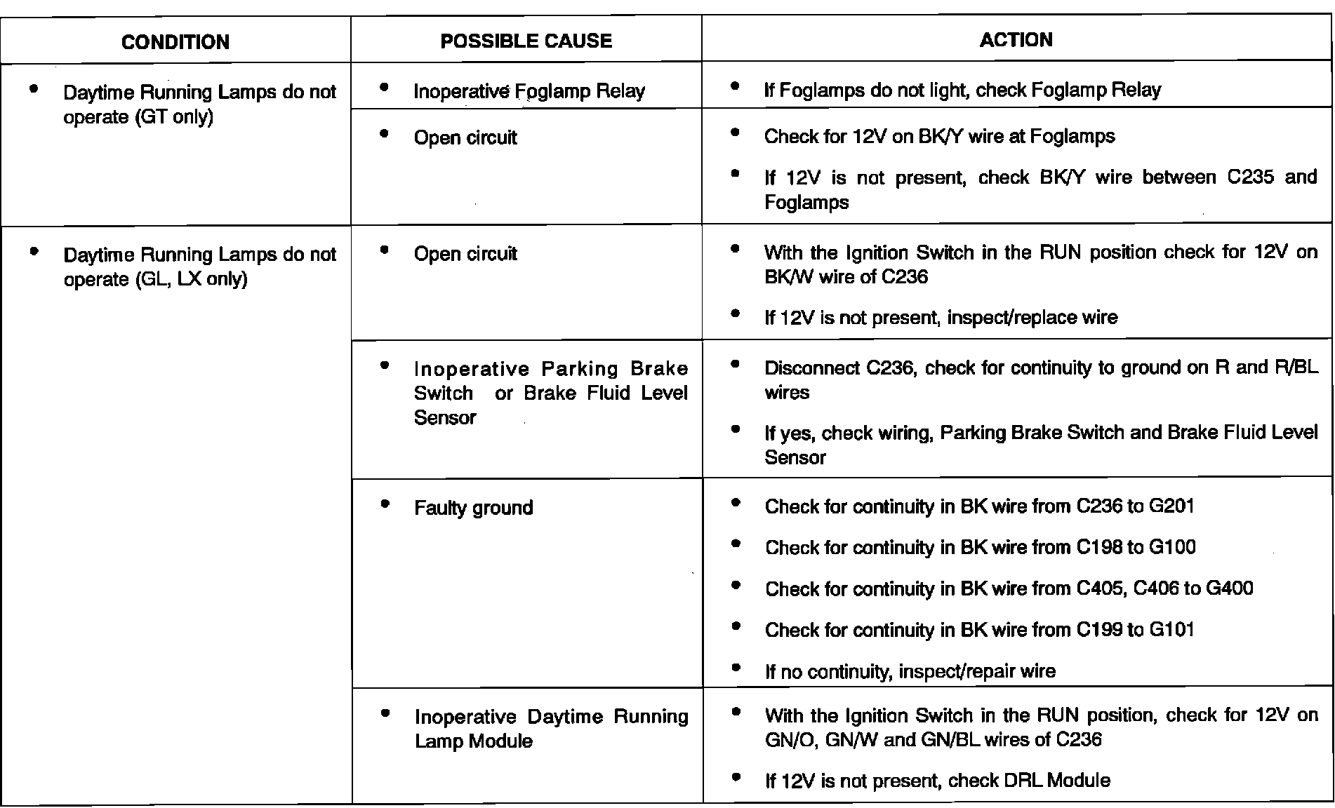 Daytime Running Lamp Control Unit: Testing and Inspection