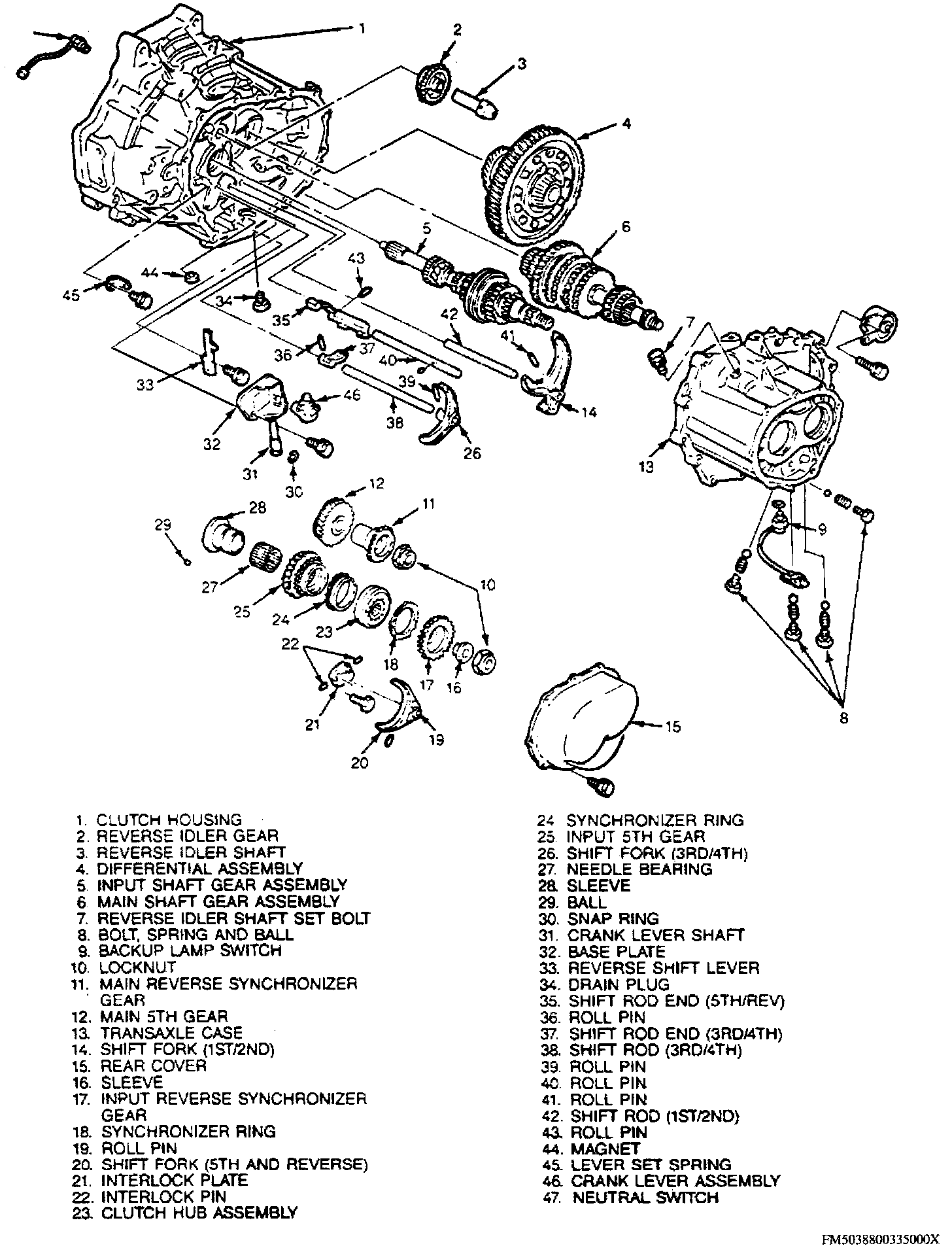 8. Remove main fifth gear, then the interlock plate and bolts.