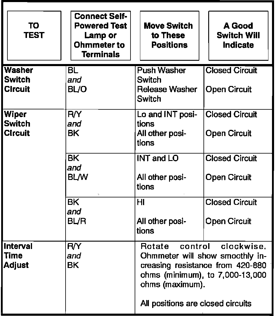 Windshield Washer Switch: Testing and Inspection