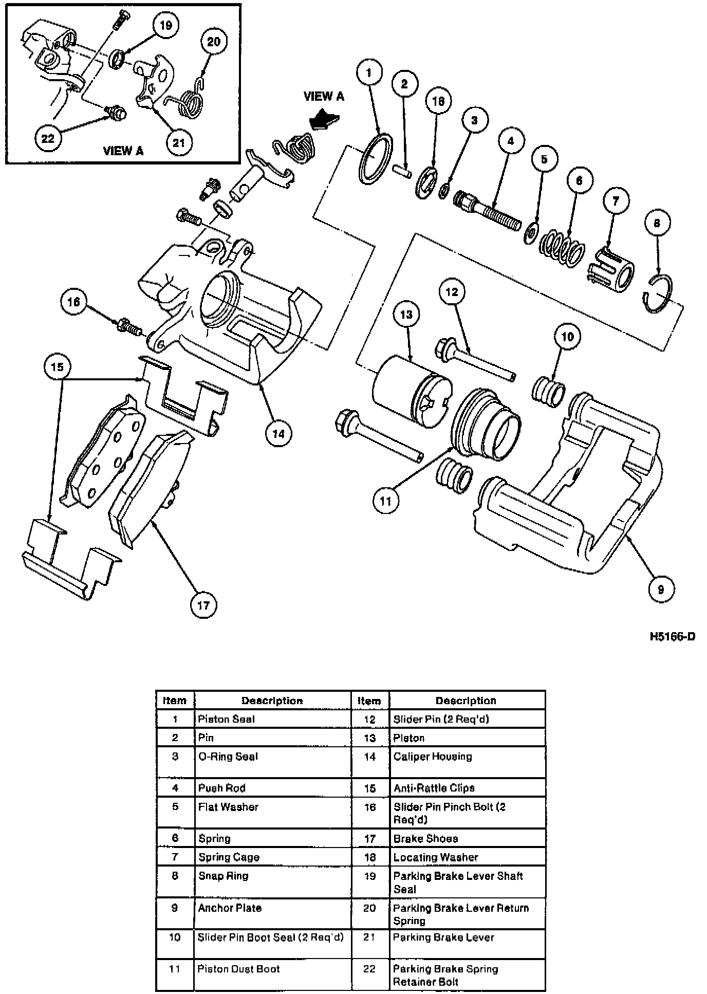 2. Grease parking brake shaft recess and slightly grease parking brake lever shaft. Insert shaft into bore in caliper housing.