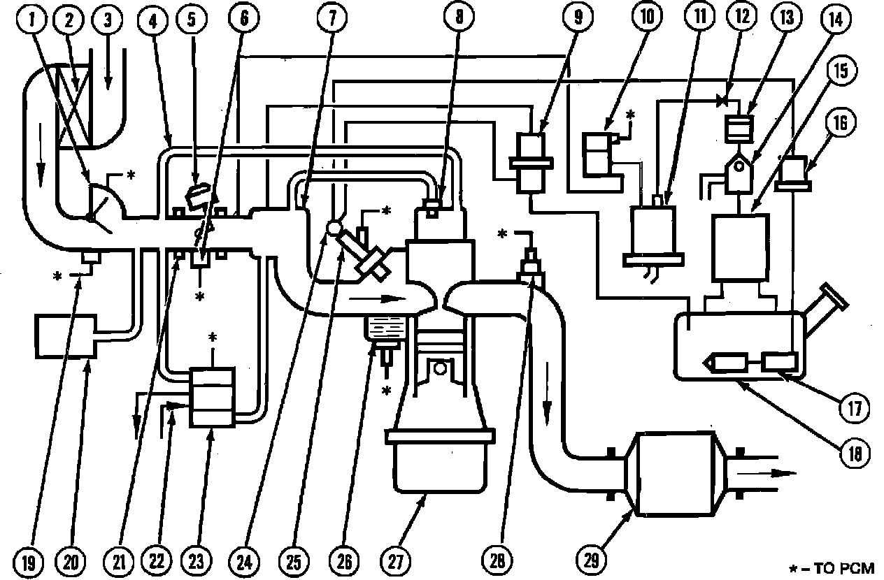 This was one of the first emission control systems. Rather than being vented to atmosphere, crankcase fumes are routed back through the intake system and reburned. Basic systems consist of necessary hoses and a Positive Crankcase Ventilation (PCV) Valve to regulate fume flow through the system.