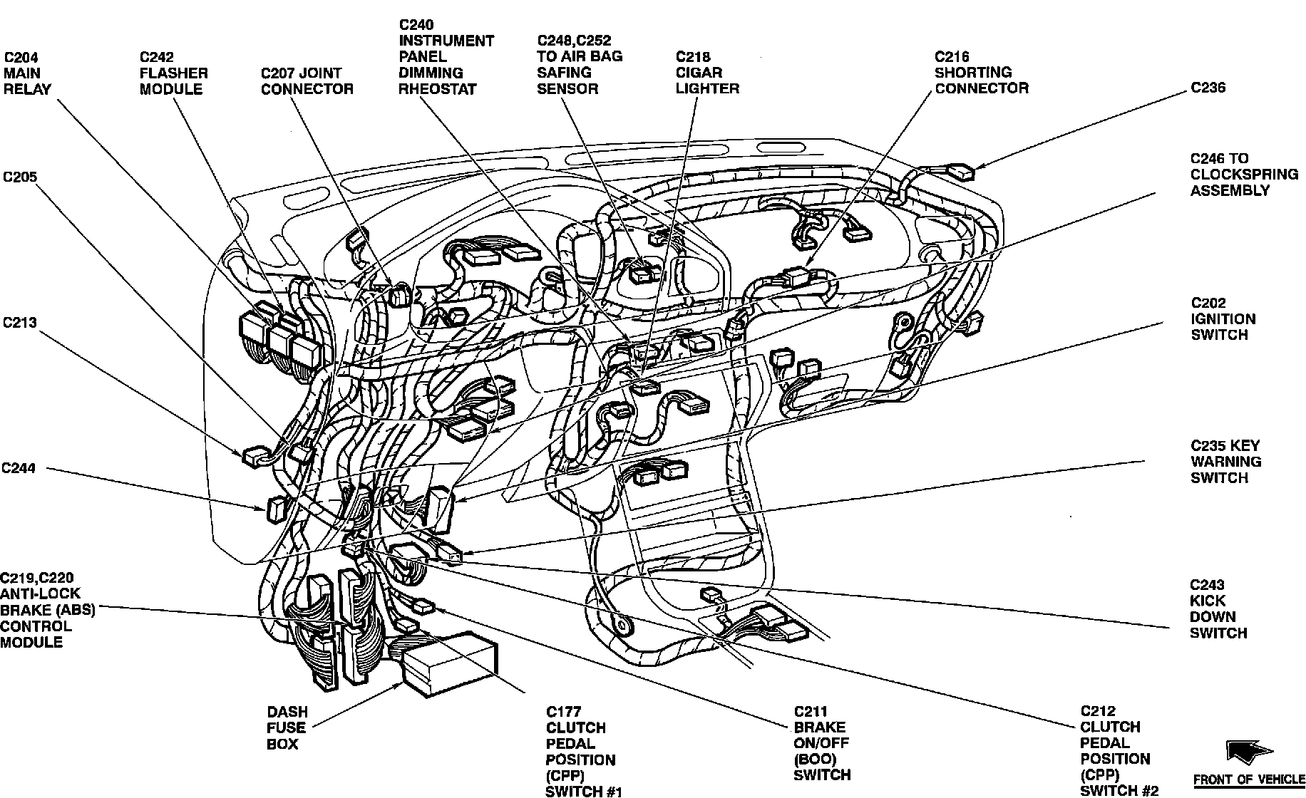 The Main Relay is located behind the instrument panel, at the LH cowl.