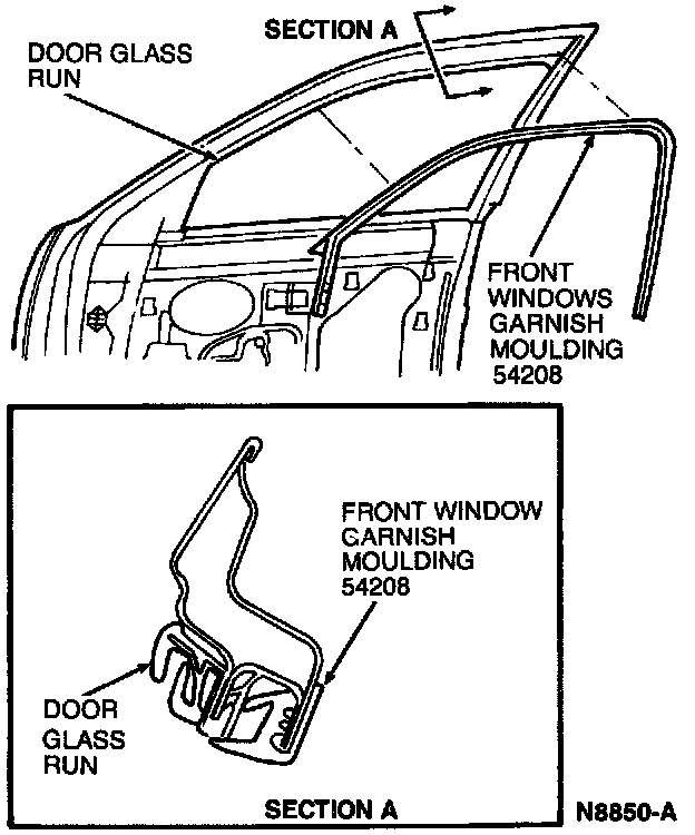 4. Install glass run retaining screw and washer assemblies. Tighten retaining screw to 9-14 N-m (7-10 lb-ft).