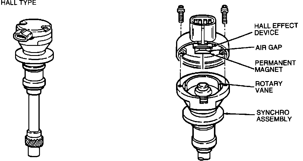 The Hall Effect device signal supplied to the Powertrain Control Module (PCM), is used for synchronization of sequential fuel injector firing.