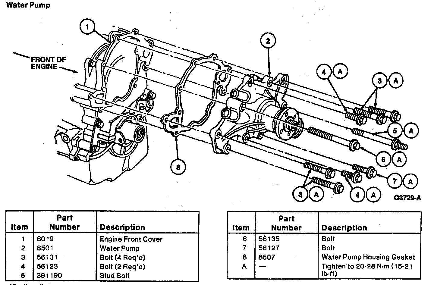10. Tighten the engine front cover-to-cylinder block retaining bolts to 16-24 Nm (12-18 lb-ft). Remove the pilot.