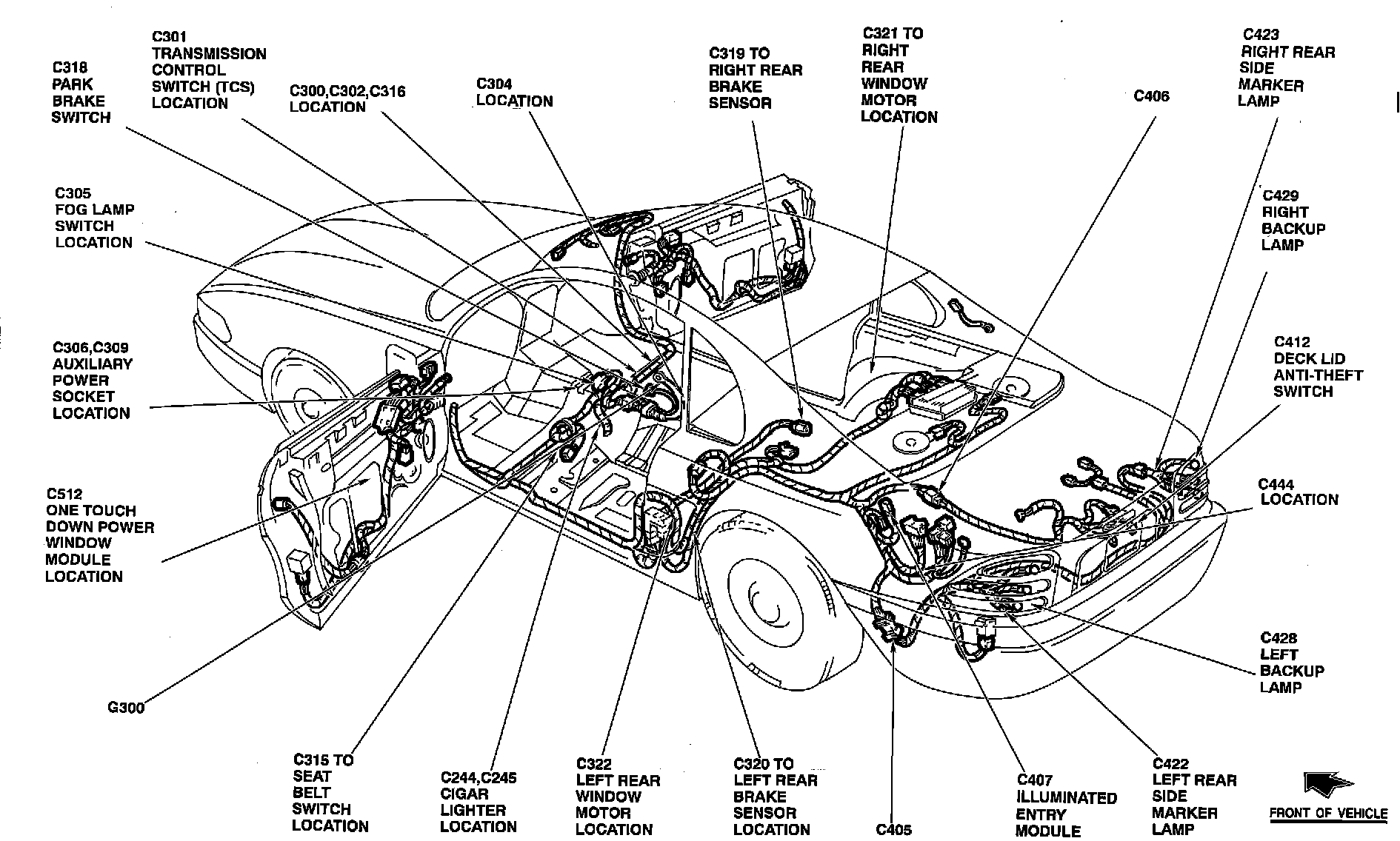 The One Touch Down Power Window Module is located in the lower rear of the LH door.