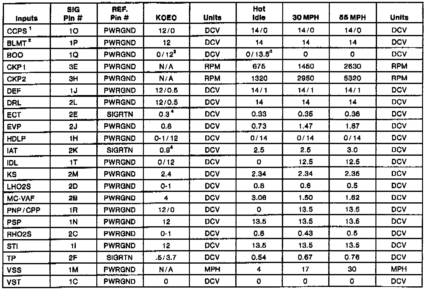 NOTE: For tests involving switches, the values will be: switch OFF (released)/switch ON (depressed).Inputs
