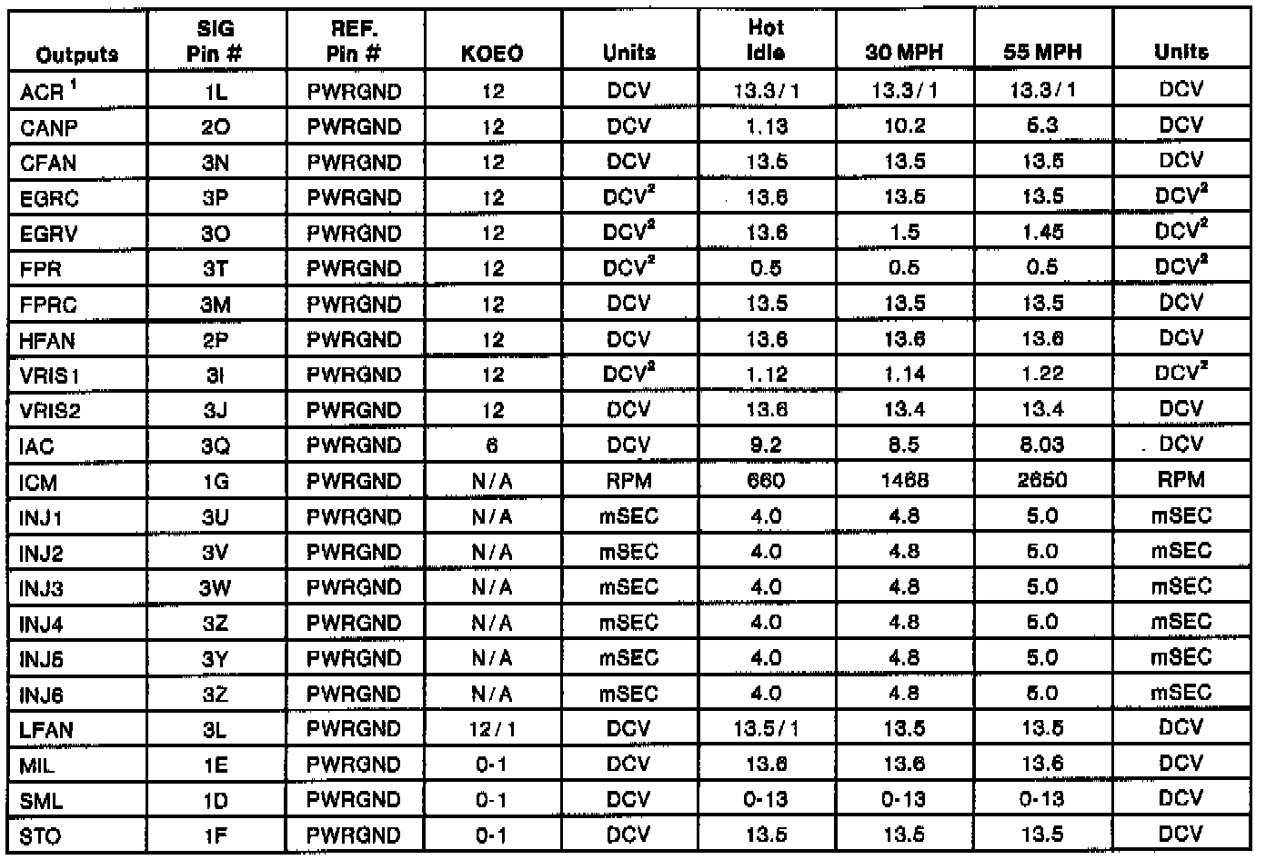 NOTE: Reference values shown may vary approximately +/- 2O percent depending on operating conditions and other factors.