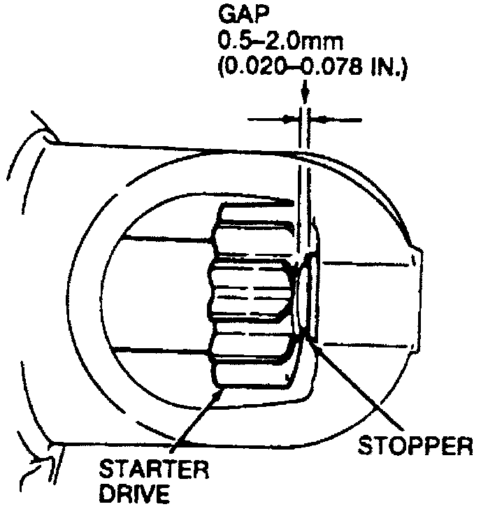4. Measure clearance between starter drive and stopper. Starter drive pinion gap should measure 0.020-0.078 inches.