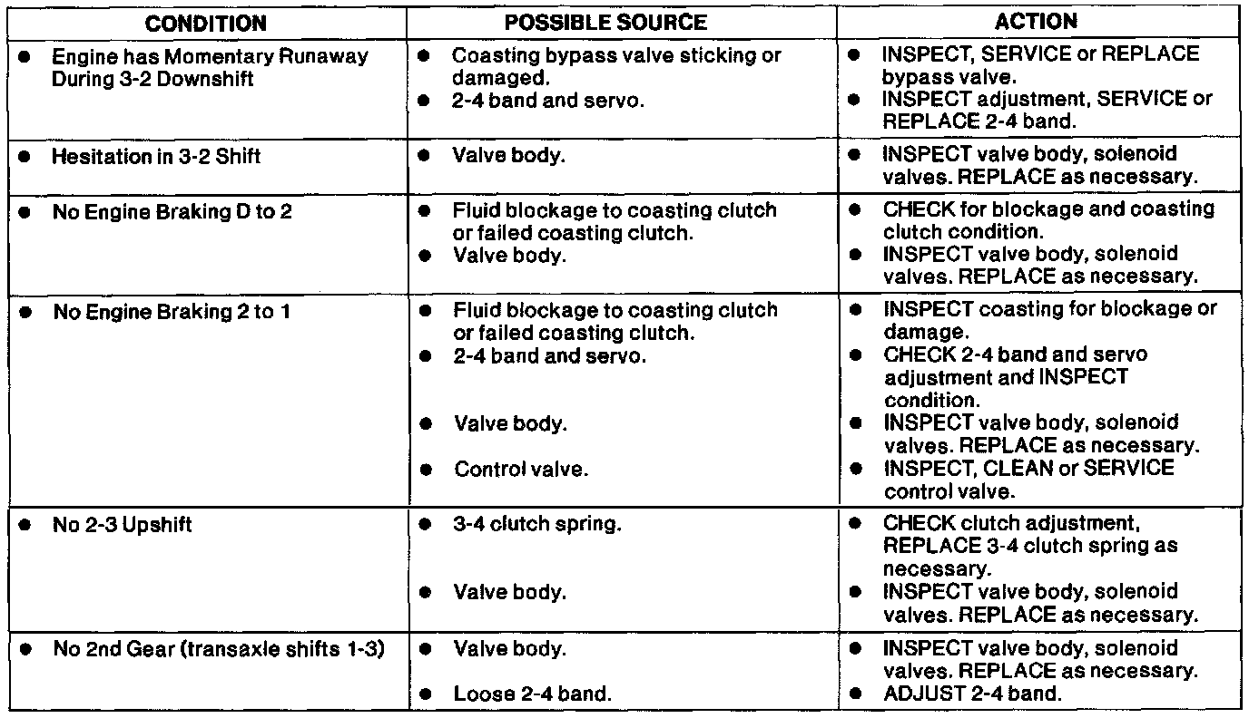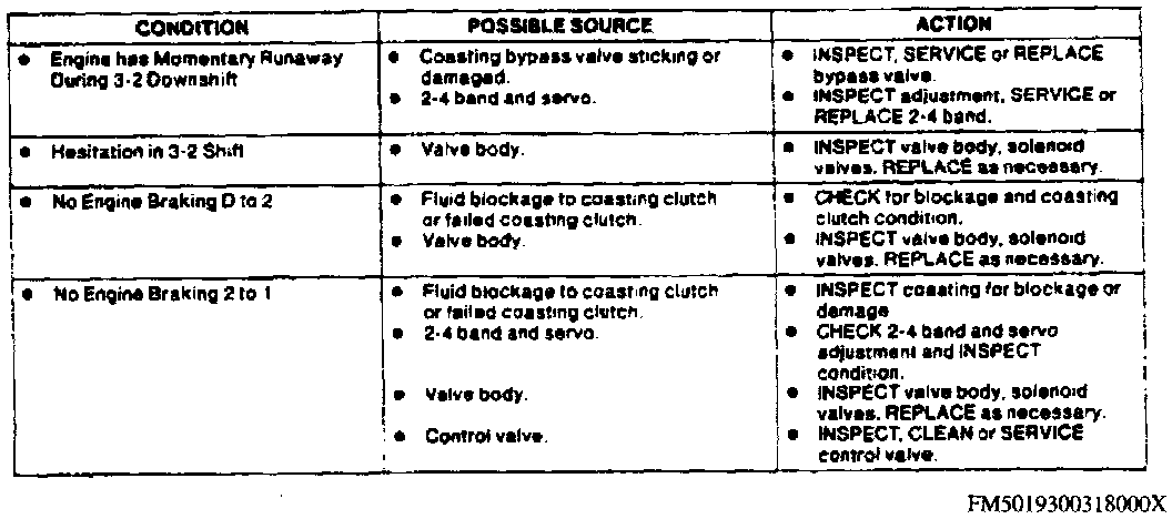Downshift Symptom Chart.: