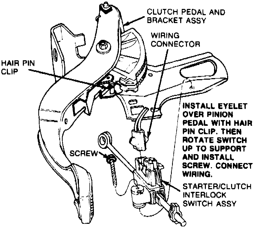 4. Adjust starter/clutch interlock switch by pressing clutch pedal to floor.