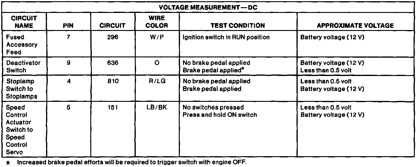 Cruise Control Switch: Testing and Inspection