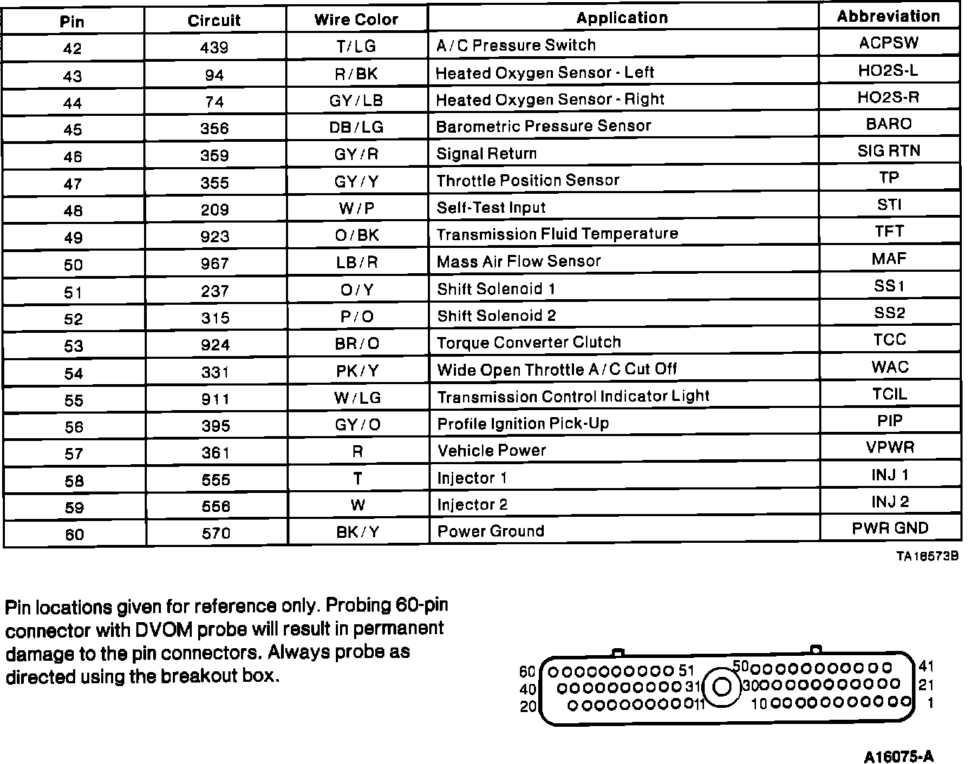 Powertrain Control Module (PCM) Connector Pin Usage: