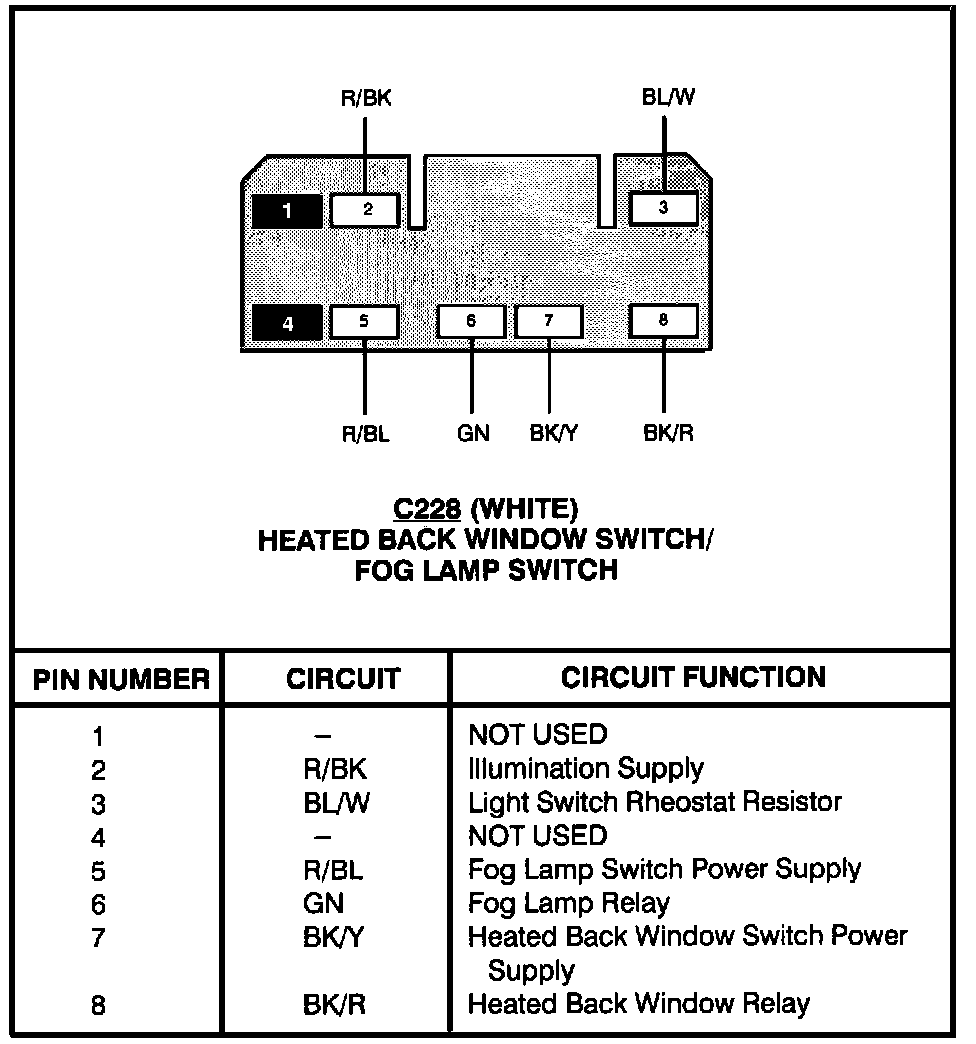 Heated Back Window Switch/Fog Lamp Switch: