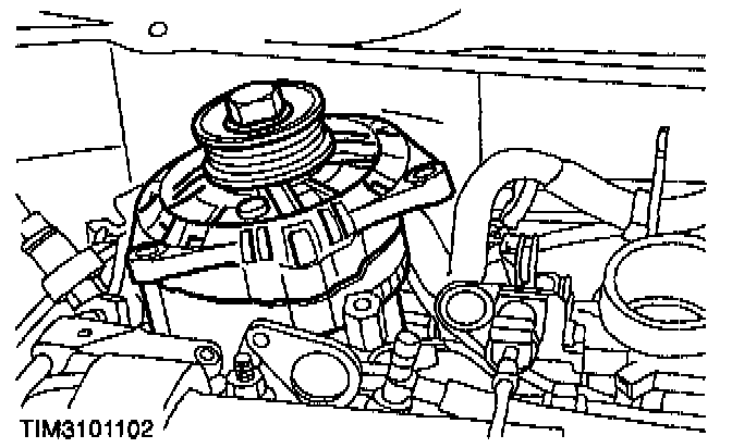 CAUTION: There is a very limited amount of space in which to remove the generator. Do not overstress or damage any hoses or cables.